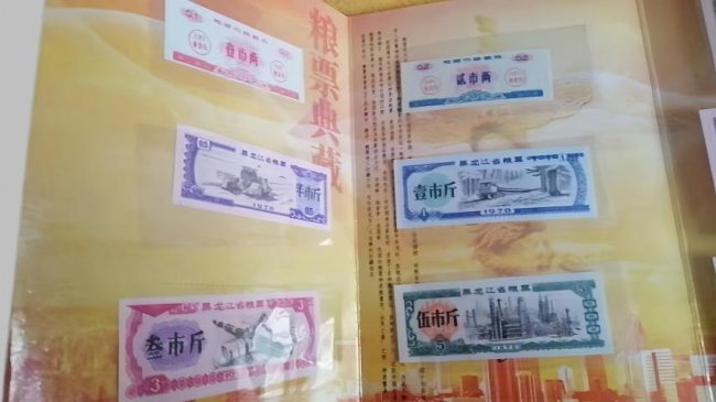 展品介绍:这是一套1978 年版黑龙江省地方粮票,包含壹市两、贰市两、半市斤、壹市斤、叁市斤、伍市斤 6 种面额,票面印有农业机械、工业建设等图案,带有鲜明的东北工业时代印记,是计划经济时期地方购粮凭证的典型代表。
