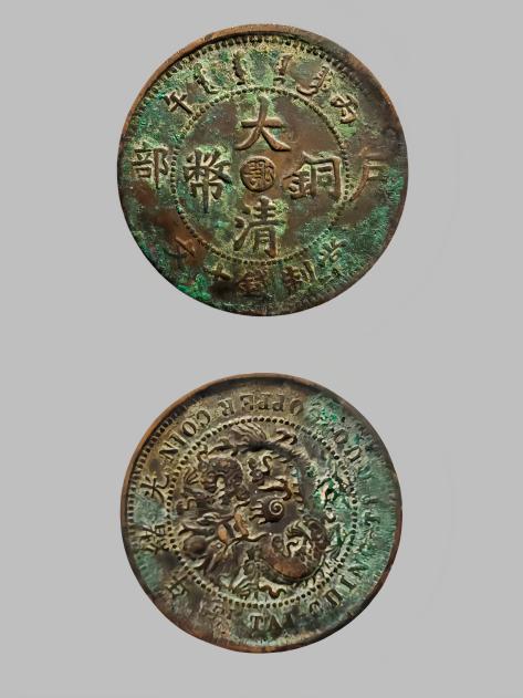 展品介绍:这是一枚清代湖北省造光绪元宝铜元,正面铸“光绪元宝”字样,背面为清代龙纹图案,是晚清机制铜元的典型品类,见证了清末币制变革的历史。