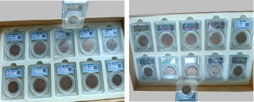 展品介绍:这是一套包含多类老钱币的收藏组合: