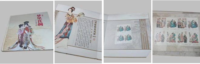 展品介绍:这是《梦里莨绸》主题的红楼梦邮票珍藏册,收录了以《红楼梦》经典场景为主题的特种邮票,搭配相关插画与文字介绍,兼具文学韵味与收藏价值。