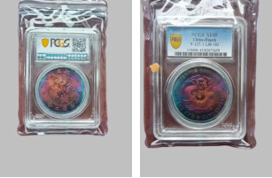 展品介绍:这是一枚湖北省造光绪元宝七钱二分银币,经 PCGS 评级为 XF45。它是晚清机制龙洋的代表品种,正面铸 “湖北省造・光绪元宝”,背面为蟠龙图案,见证了中国近代货币从银两制向银元制的转型。评级币 + 五彩包浆的组合,既保证了真伪与品相,又因特殊的氧化色泽提升了收藏价值,是近代机制币收藏中的热门品类。