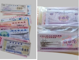 展品介绍:这是一组山西省粮票,票面印有“壹市两”、“贰市两”等面值,见证了计划经济时代的物资流通历史,是极具时代特征的老票证。