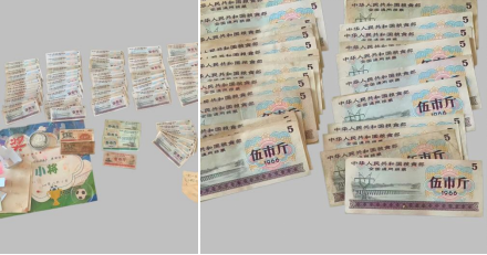 展品介绍:这是两版全国通用粮票,分别为叁市斤、伍市斤面额,属计划经济时期的购粮凭证,整版保存,各100张。是兼具时代印记与收藏价值的票证藏品。